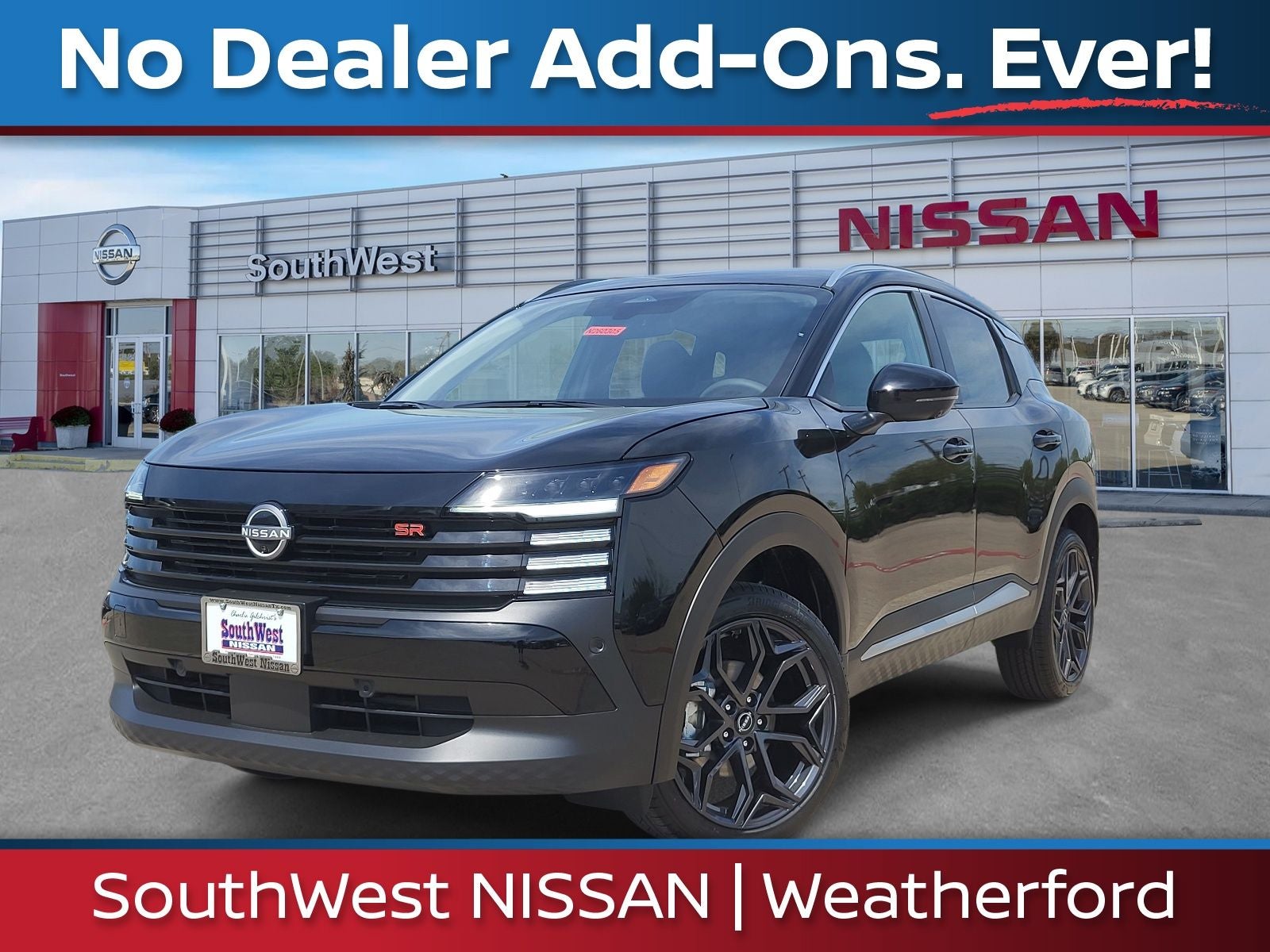 At Southwest Nissan in Weatherford, TX, what you see is what you pay – no dealer add-ons, no hidden fees, and no games. We make buying a new Nissan simple, transparent, and stress-free from start to finish. Conveniently located near Fort Worth and serving Parker County, we offer a wide selection of new Nissan cars, trucks, and SUVs priced competitively for today's market. If you're searching for the best place to buy a new Nissan in Weatherford with honest pricing and a straightforward process, Southwest Nissan is the dealership drivers trust. Price includes: $1500 - Nissan Customer Cash. Exp. 05/04/2026 $500 - Nissan CR MY26 New Kicks (SR and SV) Bonus Cash - Select Markets. Exp. 05/04/2026