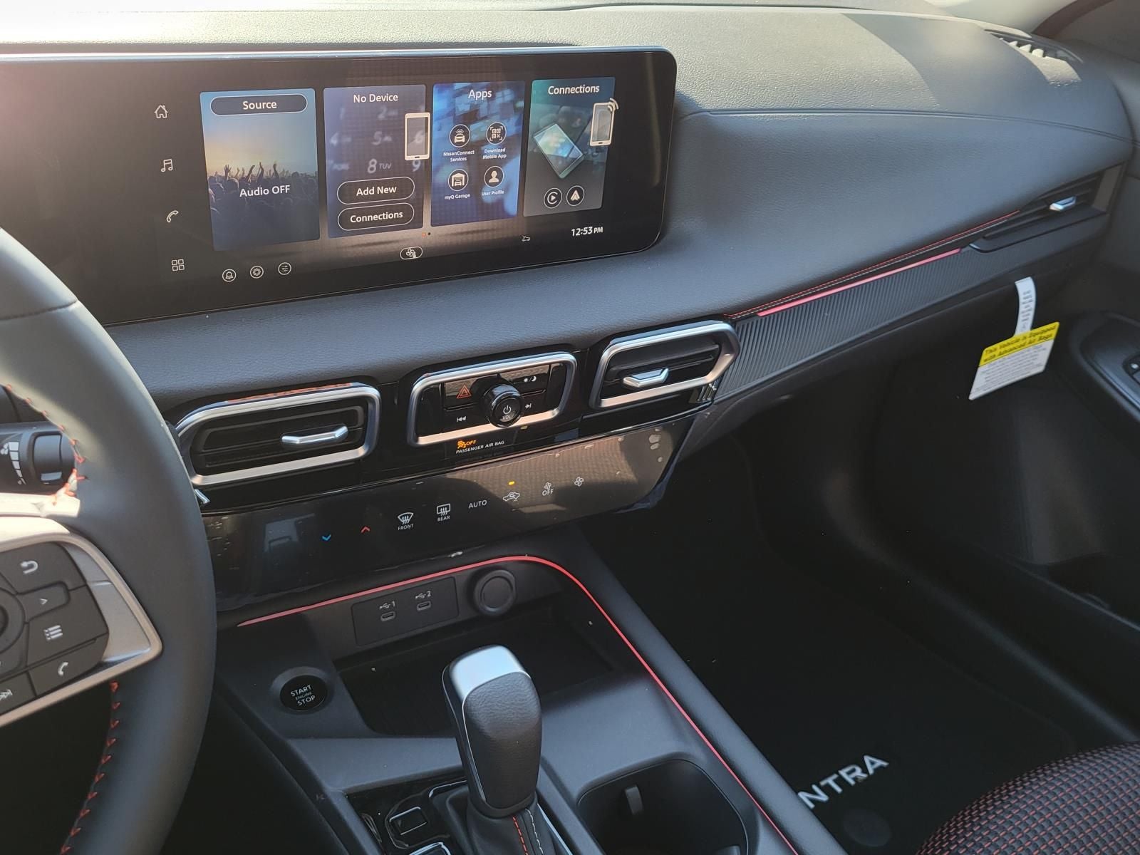 This 2026 Nissan Sentra SR in Super Black comes with the following features: 2.0L I4 DOHC CVT with Xtronic FWD Floor Mat Package, CVT with Xtronic, Sport Cloth, 18 Machined Alloy Wheels, 4-Wheel Disc Brakes, 6 Speakers, ABS brakes, Air Conditioning, Alloy wheels, AM/FM radio: Sirius, Auto High-beam Headlights, Automatic temperature control, Brake assist, Bumpers: body-color, Delay-off headlights, Driver door bin, Driver vanity mirror, Dual front impact airbags, Dual front side impact airbags, Electronic Stability Control, Emergency communication system: NissanConnect(R) Services powered by SiriusXM(R), Four wheel independent suspension, Front anti-roll bar, Front Bucket Seats, Front Center Armrest, Front reading lights, Fully automatic headlights, Garage door transmitter, Heated door mirrors, Illuminated entry, Illuminated Kick Plates, Knee airbag, Leather Shift Knob, Leather steering wheel, Low tire pressure warning, Occupant sensing airbag, Outside temperature display, Overhead airbag, Overhead console, Panic alarm, Passenger door bin, Passenger vanity mirror, Power door mirrors, Power steering, Power windows, Radio data system, Radio: AM/FM with RDS/MP3, Rear anti-roll bar, Rear seat center armrest, Rear side impact airbag, Rear window defroster, Remote keyless entry, Security system, Speed control, Speed-sensing steering, Split folding rear seat, Spoiler, Sport Cloth Seat Trim, Steering wheel mounted audio controls, Tachometer, Telescoping steering wheel, Tilt steering wheel, Traction control, Trip computer, Turn signal indicator mirrors, Variably intermittent wipers, and Wireless Apple CarPlay/Wireless Android Auto.