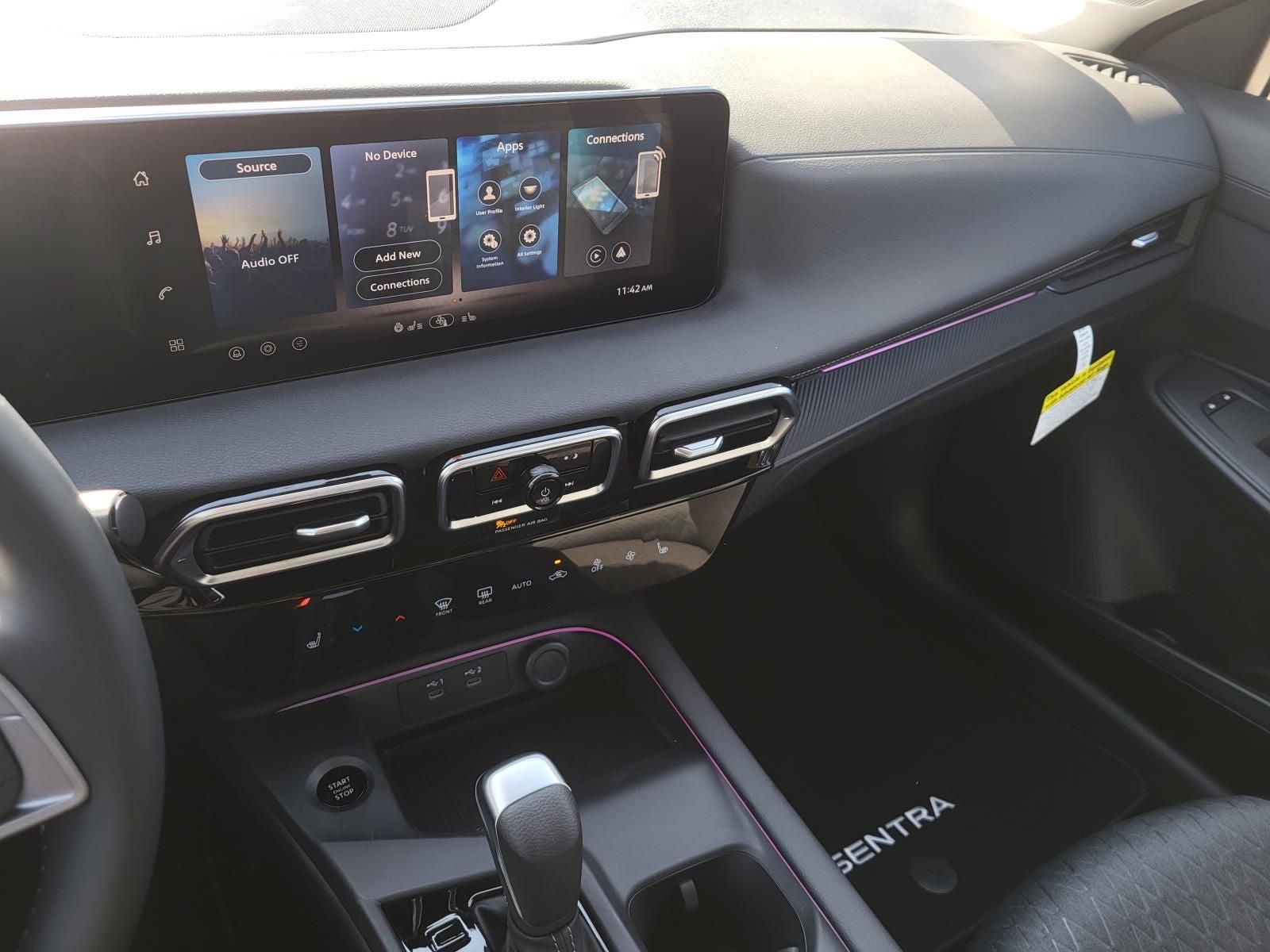 This 2026 Nissan Sentra SV in Fresh Powder comes with the following features: 2.0L I4 DOHC CVT with Xtronic FWD Floor Mat Package, SV Convenience Package (6 Speakers, Ambient Lighting, Auto Diming Inside Mirror, Heated Exterior Mirrors, Heated Front Seats, Heated Steering Wheel, I-Key with Approach Unlock All Plus Walk Away Lock, Soft Knee Pad, Synthetic Leather Steering Wheel, Visor DR/AS w/LED Light, and Wireless Charging For Personal Devices), CVT with Xtronic, Charcoal Cloth, 16 Machined Alloy Wheels, 4 Speakers, 4-Wheel Disc Brakes, ABS brakes, Air Conditioning, Alloy wheels, AM/FM radio: Sirius, Auto High-beam Headlights, Automatic temperature control, Body Colored Splash Guards (4-Piece), Brake assist, Bumpers: body-color, Delay-off headlights, Driver door bin, Driver vanity mirror, Dual front impact airbags, Dual front side impact airbags, Electronic Stability Control, Four wheel independent suspension, Front anti-roll bar, Front Bucket Seats, Front Center Armrest, Front reading lights, Fully automatic headlights, Illuminated entry, Interior Door Scuff Protection, Knee airbag, Low tire pressure warning, Occupant sensing airbag, Outside temperature display, Overhead airbag, Overhead console, Panic alarm, Passenger door bin, Passenger vanity mirror, Power door mirrors, Power steering, Power windows, Premium Cloth Seat Trim, Radio data system, Radio: AM/FM with RDS/MP3, Rear anti-roll bar, Rear side impact airbag, Rear window defroster, Remote keyless entry, Security system, Speed control, Speed-sensing steering, Split folding rear seat, Steering wheel mounted audio controls, Tachometer, Telescoping steering wheel, Tilt steering wheel, Traction control, Trip computer, Variably intermittent wipers, and Wireless Apple CarPlay/Wireless Android Auto.