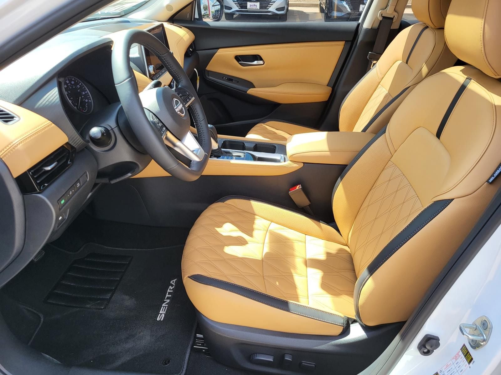 This 2025 Nissan Sentra SV in Aspen White Tricoat comes with the following features: 2.0L I4 DOHC CVT with Xtronic FWD All-Weather Package (Dual Zone Auto Climate Control, Heated Exterior Mirrors, Heated Front Seats, Leather-Wrapped Heated Steering Wheel, and Remote Engine Start), SV Premium Package (17 Alloy Wheels, 6-Way Power Driver's Seat, Intelligent Around View Monitor (I-AVM), Leather Shift Knob, and Quilted Leather Seat Trim), CVT with Xtronic, Sv Premium Leather, 16 Alloy Wheels, 4-Wheel Disc Brakes, 8 Speakers, ABS brakes, Air Conditioning, Alloy wheels, AM/FM radio: SiriusXM, Auto High-beam Headlights, Blind Spot Warning, Body Colored Splash Guards (4-Piece), Brake assist, Bumpers: body-color, Clear Rear Bumper Protector, Delay-off headlights, Door Sill Plates, Driver door bin, Driver vanity mirror, Dual front impact airbags, Dual front side impact airbags, Electronic Stability Control, Four wheel independent suspension, Front anti-roll bar, Front Bucket Seats, Front Center Armrest, Front reading lights, Fully automatic headlights, Illuminated entry, Knee airbag, Low tire pressure warning, Nissan Connect Services, NissanConnect featuring Apple CarPlay and Android Auto, NissanConnect Services, Occupant sensing airbag, Outside temperature display, Overhead airbag, Overhead console, Panic alarm, Passenger door bin, Passenger vanity mirror, Power door mirrors, Power steering, Power windows, Premium Paint, Radio data system, Rear anti-roll bar, Rear Parking Sensors, Rear side impact airbag, Rear window defroster, Remote keyless entry, Security system, Speed control, Speed-sensing steering, Split folding rear seat, Steering wheel mounted audio controls, Tachometer, Telescoping steering wheel, Tilt steering wheel, Traction control, Trip computer, Upgraded Cloth Seat Trim, Variably intermittent wipers, and Wi-Fi Hotspot.