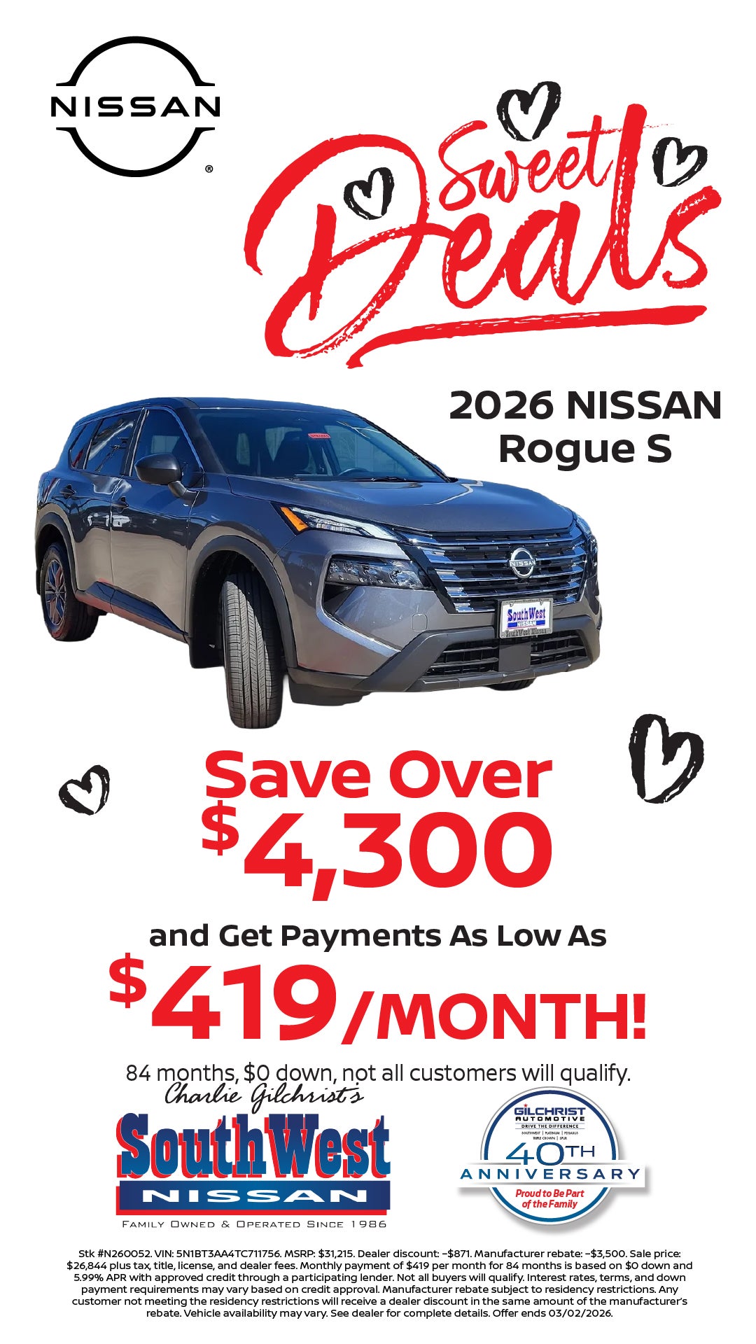Drive a Brand-New 2026 Rogue S for Just $419/mo!
