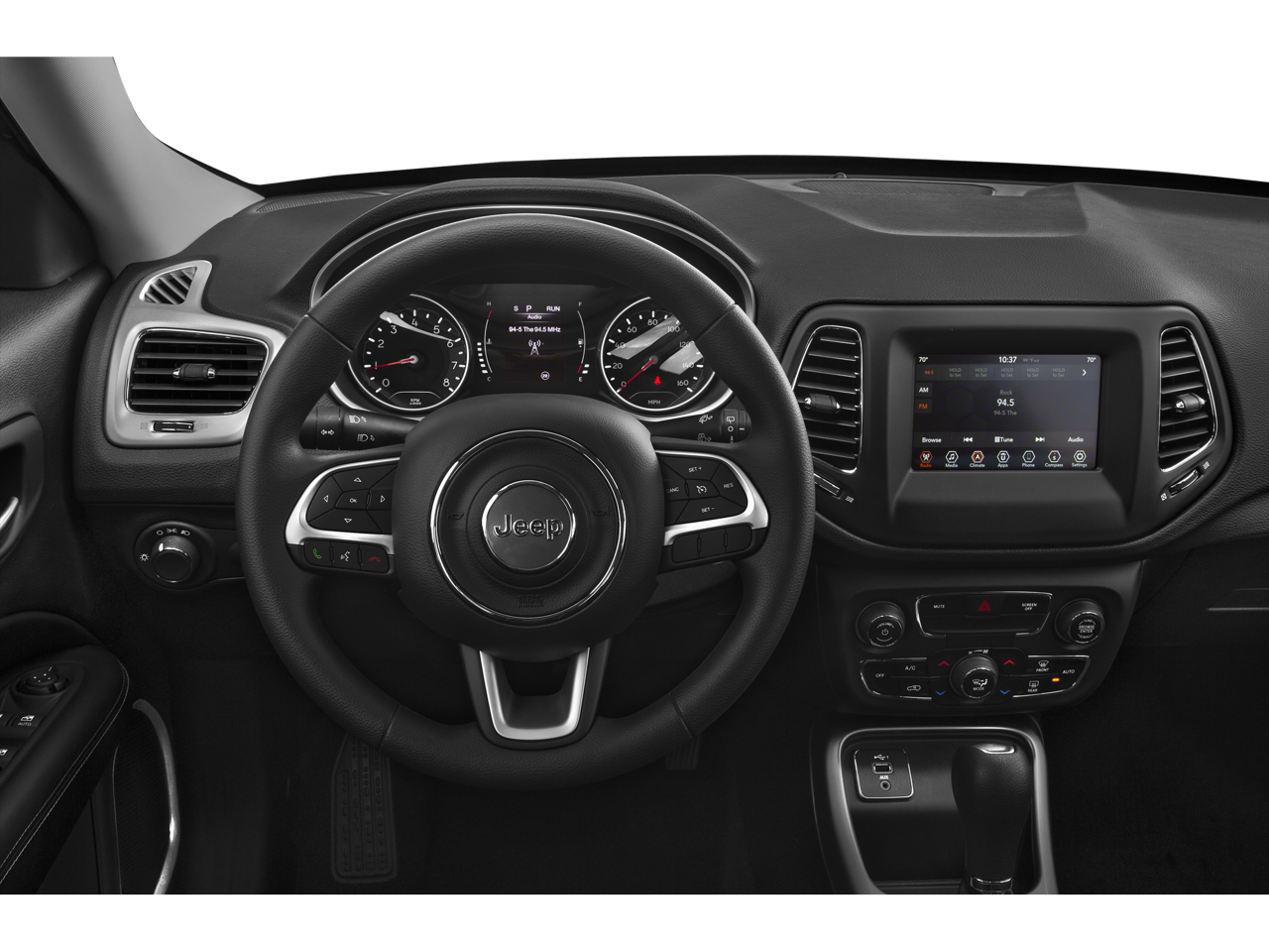 This 2020 Jeep Compass Latitude in comes with the following features: 2.4L I4 6-Speed Aisin Automatic FWD Quick Order Package 28C Sun & Safety (Advanced Brake Assist, Auto High Beam Headlamp Control, Auto-Dimming Rear-View Mirror, Blind Spot & Cross Path Detection, Full Speed FWD Collision Warn Plus, Lane Departure Warning Plus, Power Front/Fixed Rear Full Sunroof, Rain Sensitive/Intermittent Wipers, and Wheels: 17 x 7.0 Polished/Granite Pockets Alum), 3.502 Axle Ratio, 4-Wheel Disc Brakes, 6 Speakers, ABS brakes, Air Conditioning, Alloy wheels, AM/FM radio: SiriusXM, Anti-whiplash front head restraints, Apple CarPlay, Apple CarPlay/Android Auto, Automatic temperature control, Bluetooth® Streaming Audio, Brake assist, Bumpers: body-color, Compass, Delay-off headlights, Driver door bin, Driver vanity mirror, Dual front impact airbags, Dual front side impact airbags, Electronic Stability Control, Four wheel independent suspension, Front anti-roll bar, Front Bucket Seats, Front Center Armrest w/Storage, Front dual zone A/C, Front fog lights, Front License Plate Bracket (DISC), Front reading lights, Fully automatic headlights, Google Android Auto, GPS Antenna Input, Heated door mirrors, Illuminated entry, Knee airbag, Leather Shift Knob, Leather Wrapped Steering Wheel (DISC), Low tire pressure warning, Manufacturer's Statement of Origin (DISC), Media Hub (USB, AUX), Occupant sensing airbag, Outside temperature display, Overhead airbag, Overhead console, Panic alarm, ParkView Rear Back-Up Camera, Passenger door bin, Passenger vanity mirror, Power door mirrors, Power steering, Power windows, Premium Cloth/Vinyl Bucket Seats, Radio: Uconnect 4 w/7 Display, Rear anti-roll bar, Rear seat center armrest, Rear window defroster, Rear window wiper, Remote keyless entry, Roof rack: rails only, Speed control, Split folding rear seat, Spoiler, Steering wheel mounted audio controls, Tachometer, Telescoping steering wheel, Tilt steering wheel, Traction control, Trip computer, USB Host Flip, Variably intermittent wipers, and Wheels: 17 x 7.0 Silver Painted Aluminum.