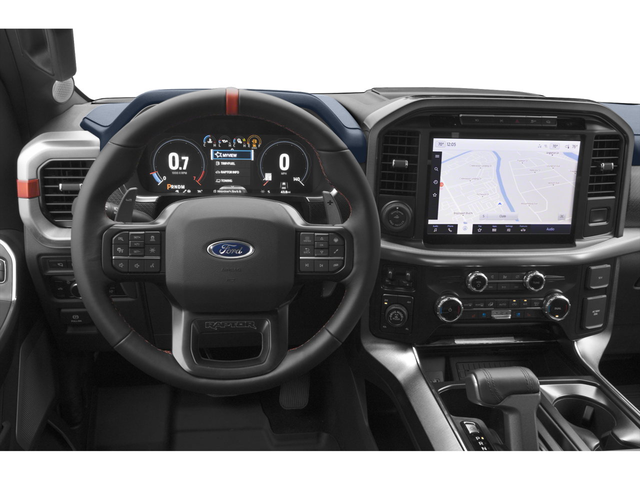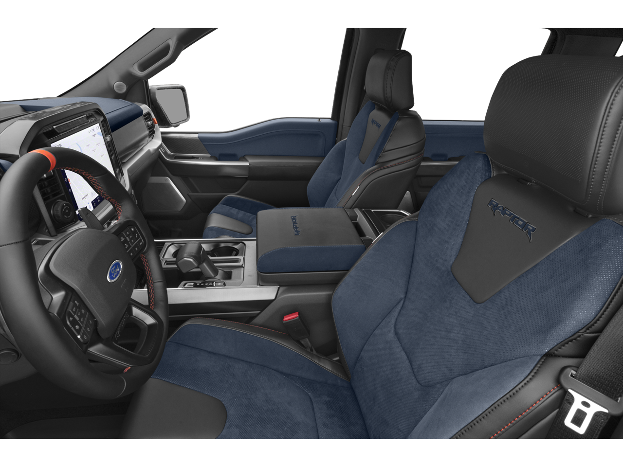 Black leather-trimmed seats with Raptor branding