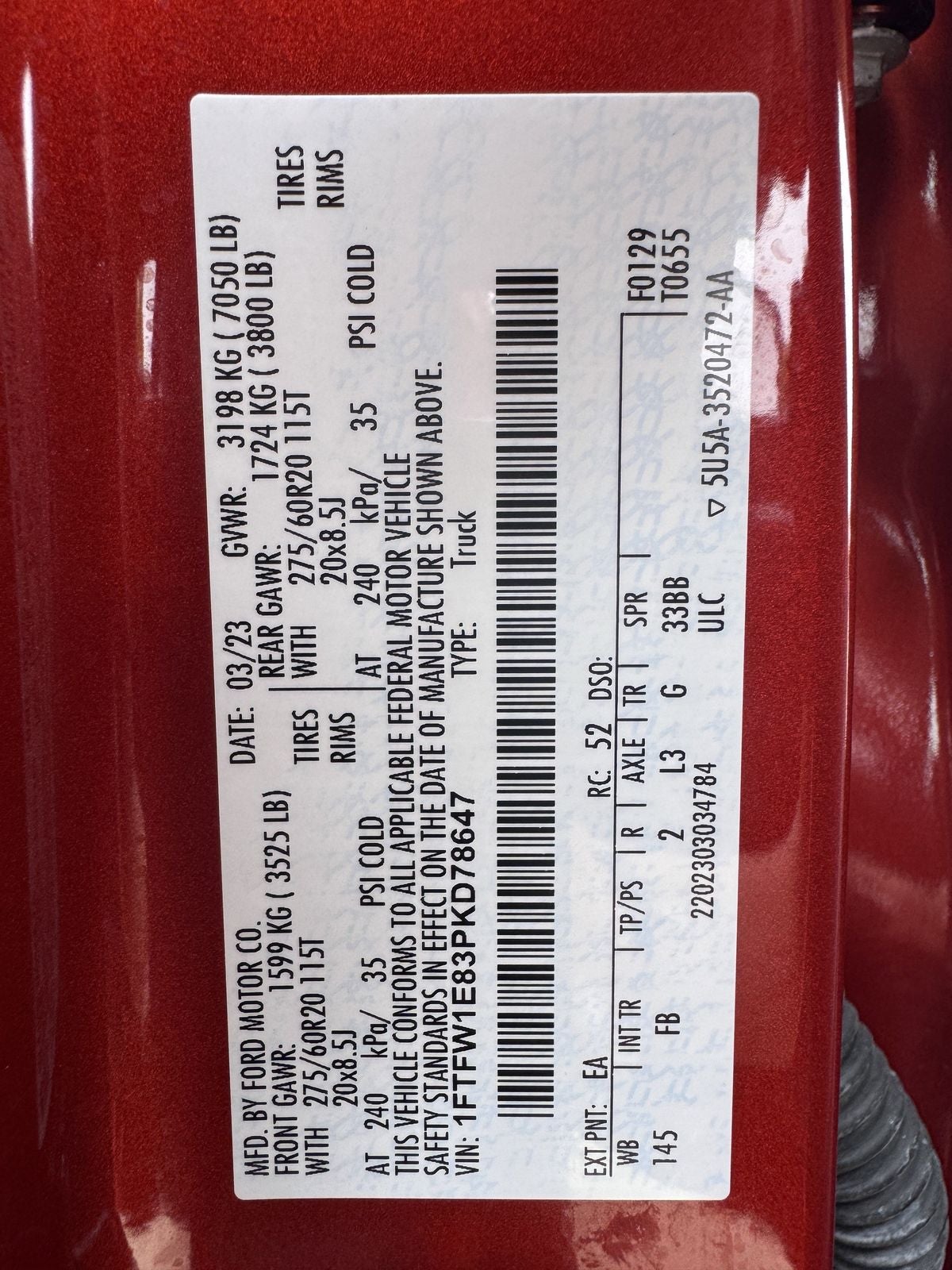 - Gross Axle Wt Rating - Front (lbs): 3450