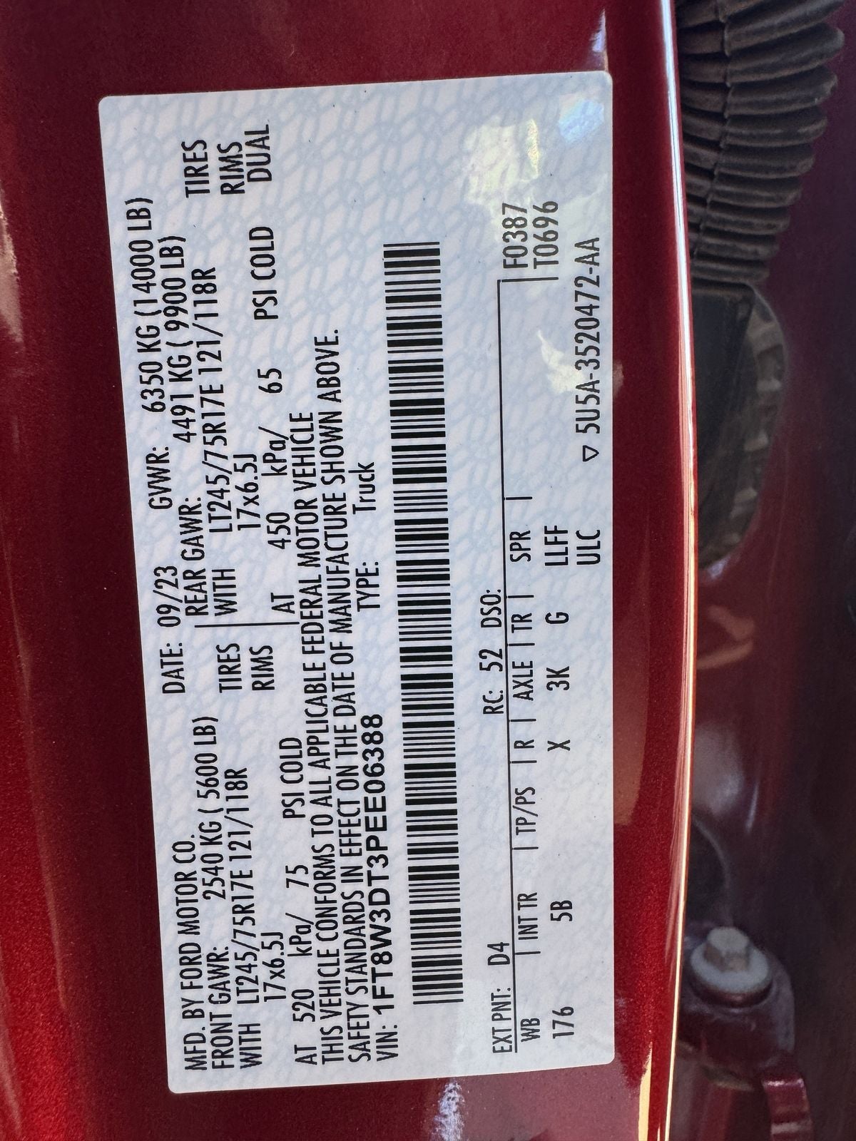 VIN: 1FT8W3DT3PEE06388